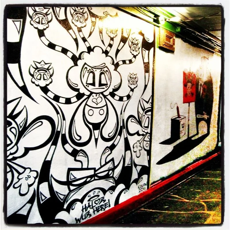 KIDLEW is an NYC-based color-blind Chorean (half-Chinese/half-Korean) artist. Born in Queens, NY, and raised on Strong Island, he started doodling the cartoon characters he saw daily on TV as a kid and soon discovered graffiti art on 1970s NYC subway trips with his grandmother. Big into skateboarding and metal music as teen, he segued into the music scene in the 90s and then studied toy design before returning to graffiti art as a part of the EX VANDALS crew. Now he may be best known for his character Lumpy Bumpkin, who has made appearances all around NYC and the world.